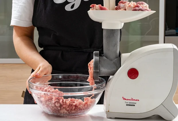 Свиную лопатку тоже нарежьте и два раза пропустите через мясорубку.