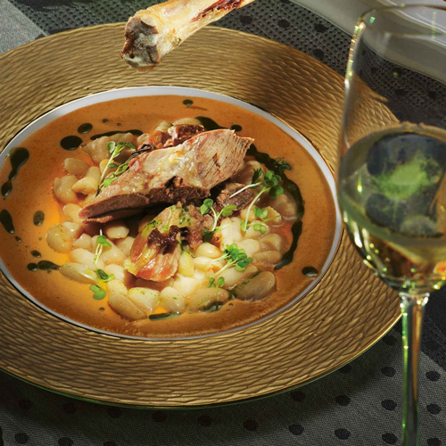 Баранина с розмарином, чесноком, печеной фасолью и перечным соусом