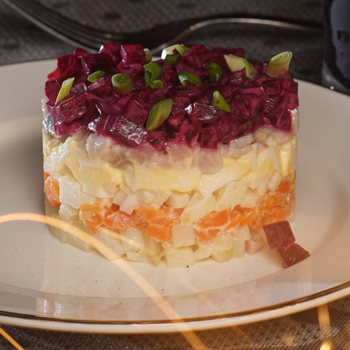 Традиционная классика в лучшем и самом качественном исполнении. Если оливье, то с говядиной, если мимоза, то с копченой рыбой, а еще — фантастический рецепт буженины!