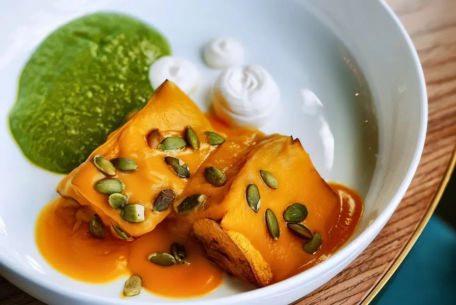 «Для супов мы используем тыкву сорта „баттернат“: он стабилен, сладок, всегда яркого цвета и в любом блюде вы получите предсказуемый результат. Если же вам нужно приготовить суп из тыквы другого сорта, то знайте, что усилить ее вкус, цвет и сладость может морковь. А еще, прежде чем отправить тыкву в суп, ее стоит хорошенько запечь.