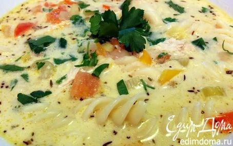 3Добавляем в бульон курицу, пасту, нарезанный кубиками помидор и тушеные овощи. Попробовать и добавить еще сливок и оливкового масла. Варим еще 5–10 минут до загустения.