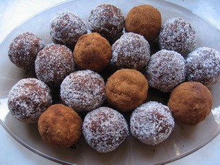 3Хорошенько все перемешайте. Из полученной массы слепите шарики. Обваляйте их в кокосовой стружке или в какао (по вкусу).