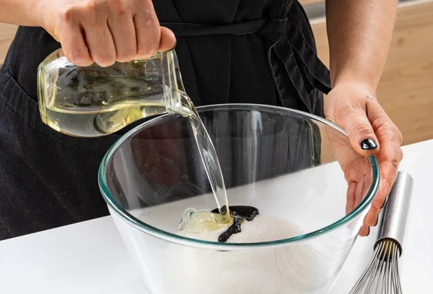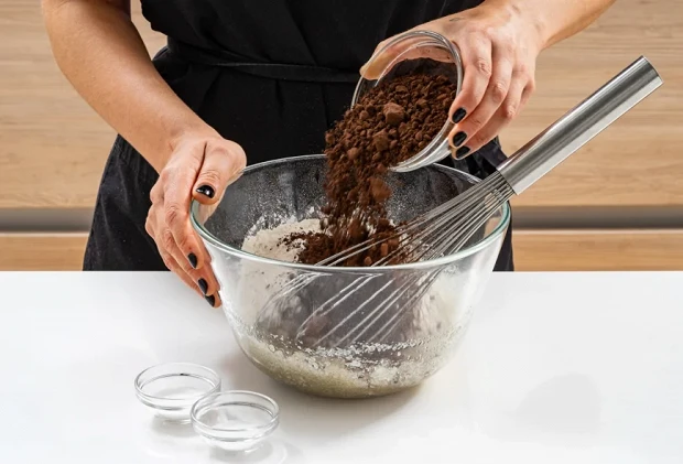 Добавить муку, какао, соду и соль. Перемешать до однородной массы.