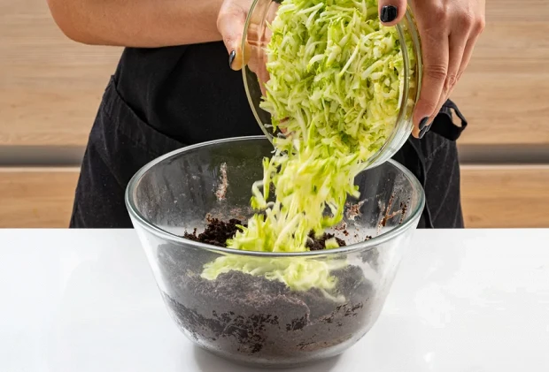 В этом рецепте наша фантазия пошла по десертному пути. Смешавшись с шоколадом и ванилью, кабачок и сам становится по вкусу ванильно-шоколадным. Но его сочность (а этот овощ на 90% состоит из воды) не исчезает, а, напротив, обогащает тесто и придает выпечке ту текстуру, за которую мы и любим брауни: влажную, тающую во рту, сочную, как у пропитанного сиропом бисквита. В общем, добавив кабачок в тесто для брауни, мы подстраховываем себя от того, что брауни выйдет суховатым. И к тому же готовим вегетарианский и относительно низкокалорийный десерт. Попробуем?