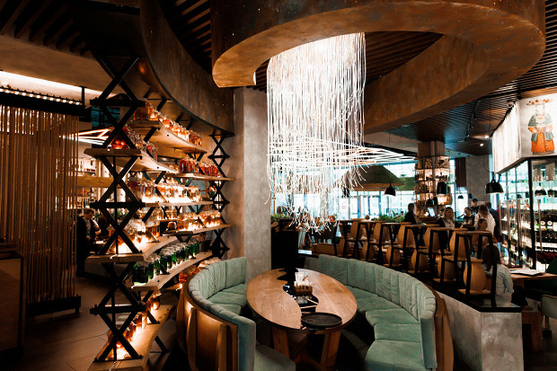 Творческое лаунж-пространство соединяет сразу две концепции, плавно перетекающие друг в друга: во-первых, страшно актуальный сегодня жанр азиатской распивочной — идзакая с раменами и теппаном, а во-вторых, стильный бар, где, по словам владельцев, царит «полный коктейльный произвол». Произвол выглядит так: в пятницу и субботу очередь у стойки выстраивается в пять рядов, а бармены, среди которых каждый второй — лауреат престижных профессиональных конкурсов российского масштаба, мешают авторские миксы и твисты на классику, используя кордиалы, настойки и дистилляты, выведенные здесь же в условиях барной лаборатории из локальных трав и ягод. Уже в первые полчаса возникает ощущение, что тут все всех знают и даже туристы не в первый раз приезжают в Ярославль специально ради шприца с настойкой на ярославской ромашке. Лаунж без грохочущей музыки, странная для провинции продвинутая азиатская еда, идеально при этом подходящая и к коктейлям, и к их утренним последствиям. Все это склеивается и кажется абсолютно гармоничным.