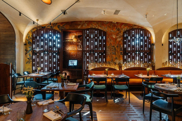Уютный ресторан с оранжереей, которая выглядит как сад Мальвины, с бокалами голубого цвета и цветными диванами. Не мудрено, что такую локацию облюбовали местные стилисты и блогеры, есть даже правило: «Хочешь фотосессию с профессиональным фотоаппаратом — купи бутылку шампанского». В названии нет ошибки, владельцы свои проекты считают бусторанами, от первого слога фамилии Буянковы, и, описывая концепцию, говорят: «Буратино — полено-парень, а у нас кухня построена на смокере, который работает на дровах». На дровах делаются и брискет, и ребрышки из раздела BBQ, и римская пицца — вот оно оправдание подстрочника — «Корочки и косточки». До 16.00 здесь завтраки с игристым, в меню: черничная овсяная каша со страчателлой и сезонными ягодами (235 р.), печеный картофель с томленой говядиной и яйцом пашот (270 р.), тосты с креветками, шпинатом и яйцом пашот (295 р.), круассаны и завтрак от шефа за 479 рублей, включающий скрэмбл, салат из печеной свеклы с сыром страчателла, паштет из печени цыпленка, мусс из копченой семги с гриссини и чиабаттой. Для любителей не только есть и пить, но и петь сделали темную с низкими потолками каморку-караоке.