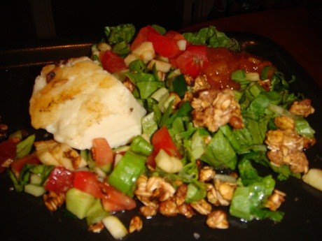 Зеленый салат с жареным халуми