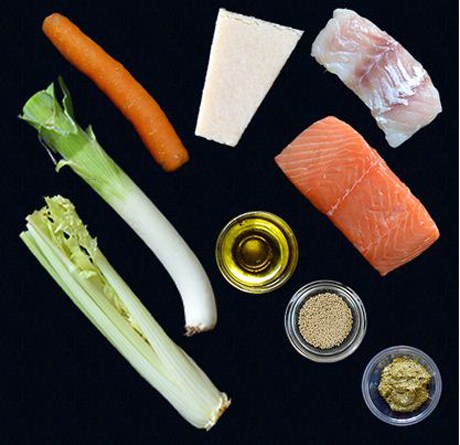 Конструктор этого блюда в ассортименте лавки сразу привлёк к себе внимание благодаря необычным ингредиентам — сухому концентрированному рыбному бульону, сицилийскому соусу Песто и отменному итальянскому Пармезану Грана Падано.