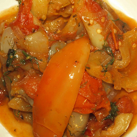 Я не большой любитель болгарского перца, но это блюдо совсем другое дело) Перец жаренный с помидорами, это мой аромат и вкус детства. Его готовил, еще мой дед. Единственная еда, которую я ожидала с нетерпением. Какой-то особенный аромат и вкус перца в этом блюде. Помидоры придают естественную остроту, а лук и зелень аромат)